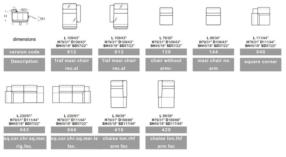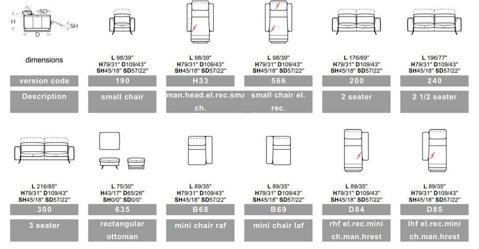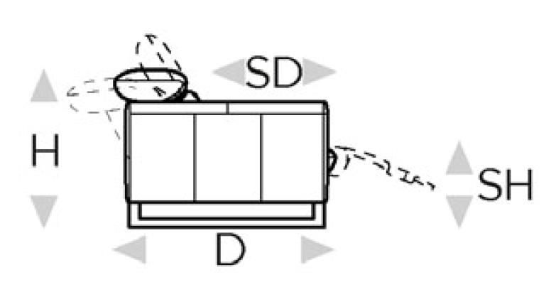 Výška (H) Hloubka (D) Výška sedadla (SH) Hloubka sedadla (SD) Délka (L)