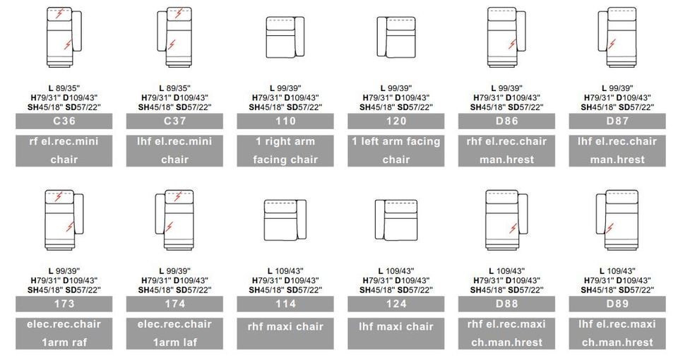 - elektrické relaxační verze jsou vybaveny elektrickým mechanismem reclineru