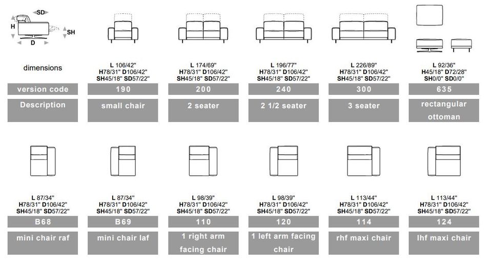 Model je dostupný v několika variantách – lineární i rohové sestavy, k tomu je možné doplnit chaise longue a pouf pro maximální variabilitu řešení. Široká paleta více než 400 barevných provedení potahů v látce i kůži umožňuje snadné sladění s vaším stylem.
