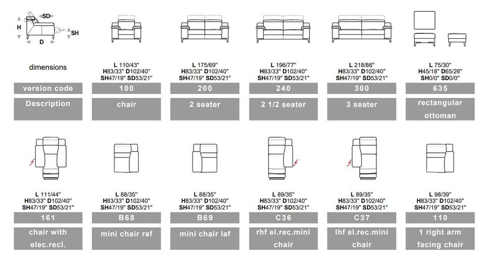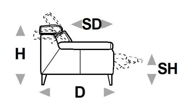 Výška (H) Hloubka (D) Výška sedadla (SH) Hloubka sedadla (SD) Délka (L)