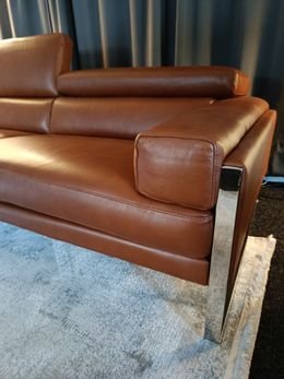 Luxusní a stylová sedačka ROMEO z kvalitní přírodní kůže v hnědém odstínu na kovové podnoži krásně rozzáří váš interiér.